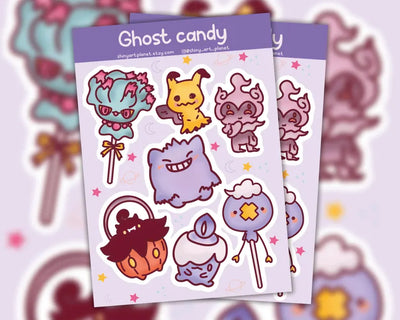 Hoja de pegatinas de vinilo Pokemon Gengar fantasma adorables kawaii resistentes al agua