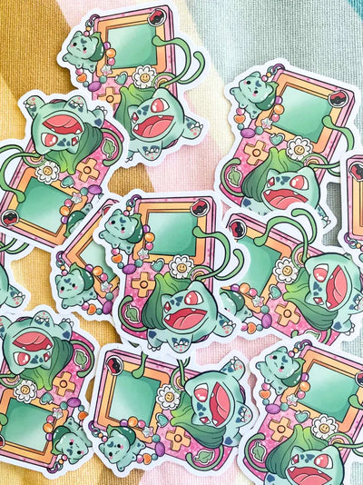 Pegatina de vinilo de Pokemon Bulbasur con consola para gamers estilo retro