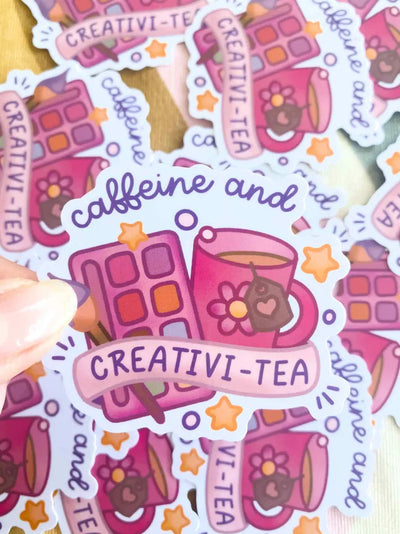Pegatina de vinilo divertida de creatividad y café para artistas sobre el dibujo estilo kawaii