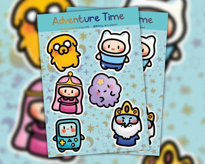 Hoja de pegatinas de Hora de Aventuras kawaii chibi Finn Jake BMO