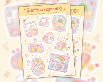 Hoja de pegatinas de vinilo gaming pastel kawaii rainbow vintage