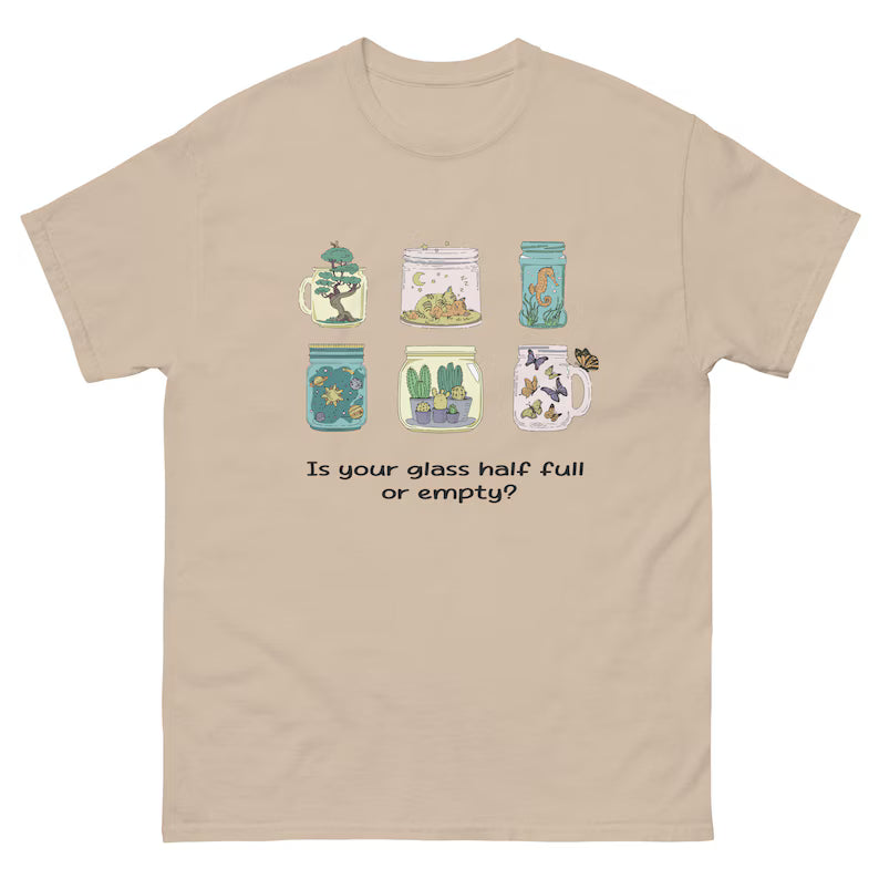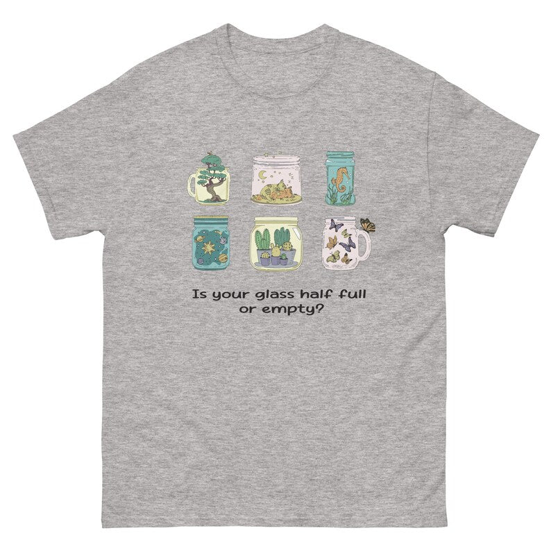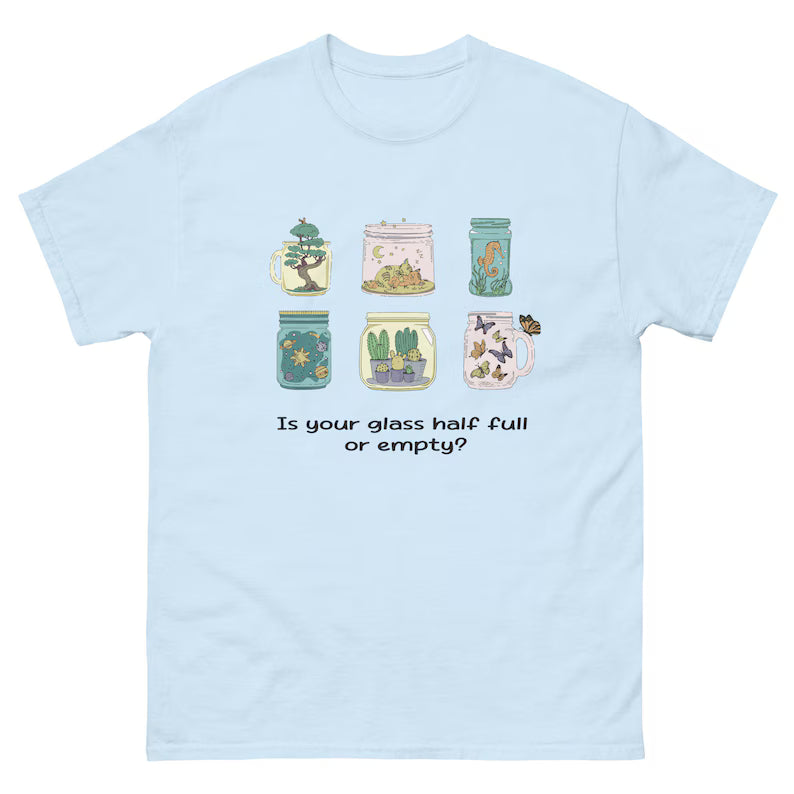 Camiseta manga corta "Tarros con plantas" Unisex impresa por al zona del pecho. La impresión principal está en la parte de delante. Modelo en varios colores.