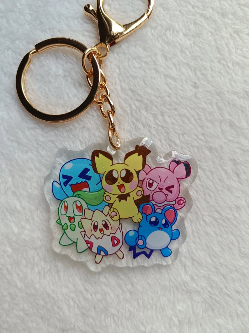 Llavero acrílico transparente de varios Pokémon en estilo kawaii adorables