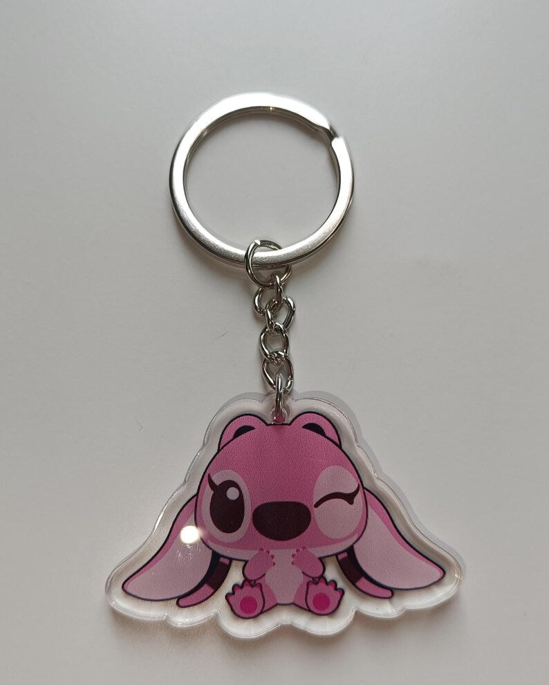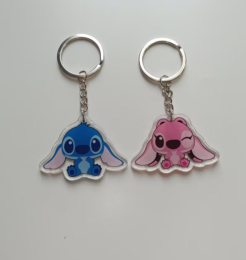 Llavero acrílico transparente de Stitch y Angel estilo kawaii
